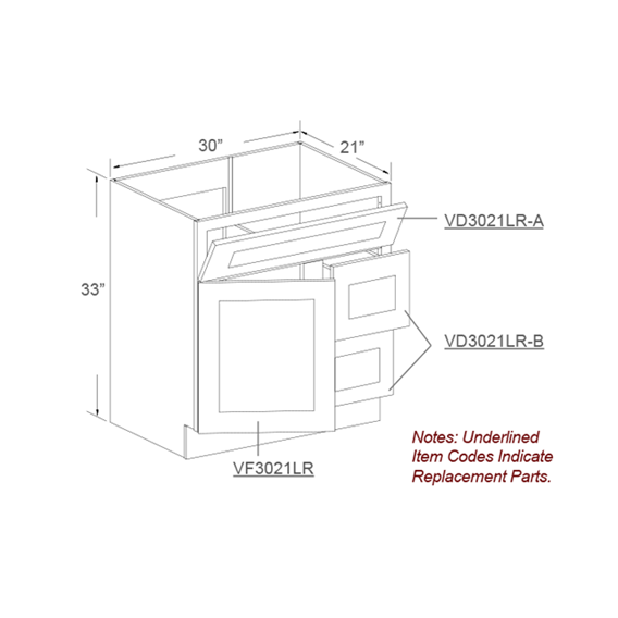Vanity Sink Cabinet, 1 Door, 2 Drawers on Right